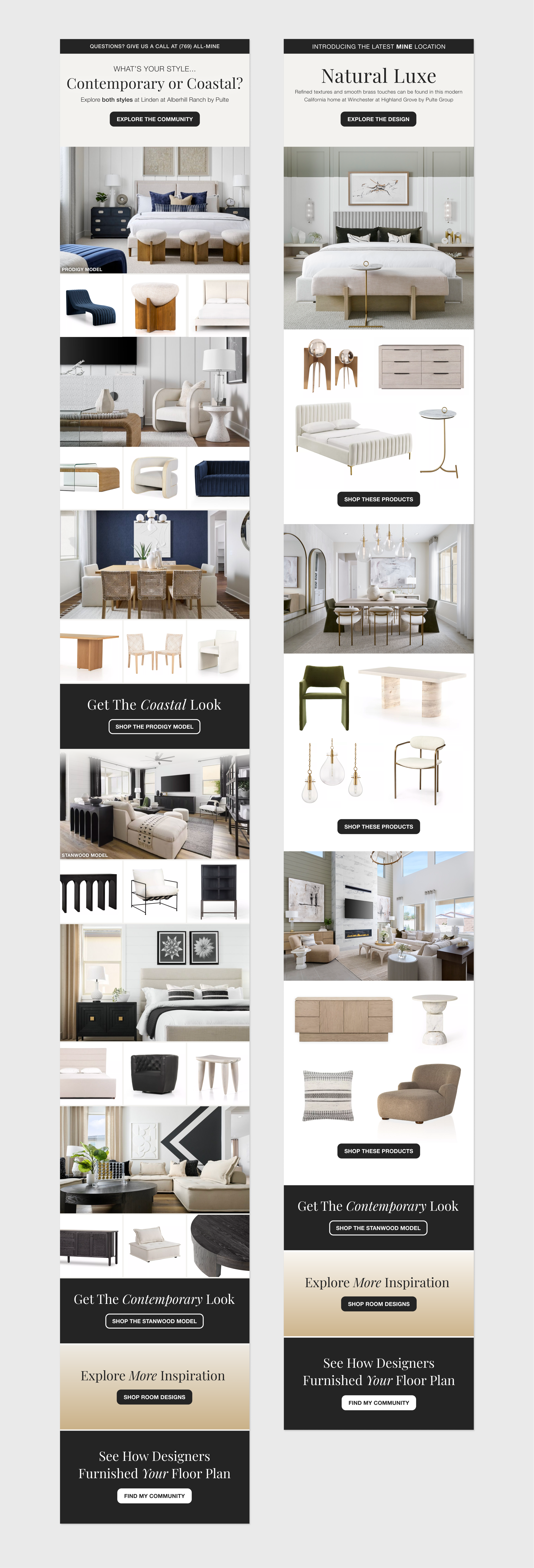 MINE is a furniture company that partners with homebuilders to turn model homes into thousands of shoppable showrooms across the country. They provide a curated shopping experience, offering a wide selection of furniture styles—such as coastal, industrial, and contemporary—both in person and online, often with included interior design services